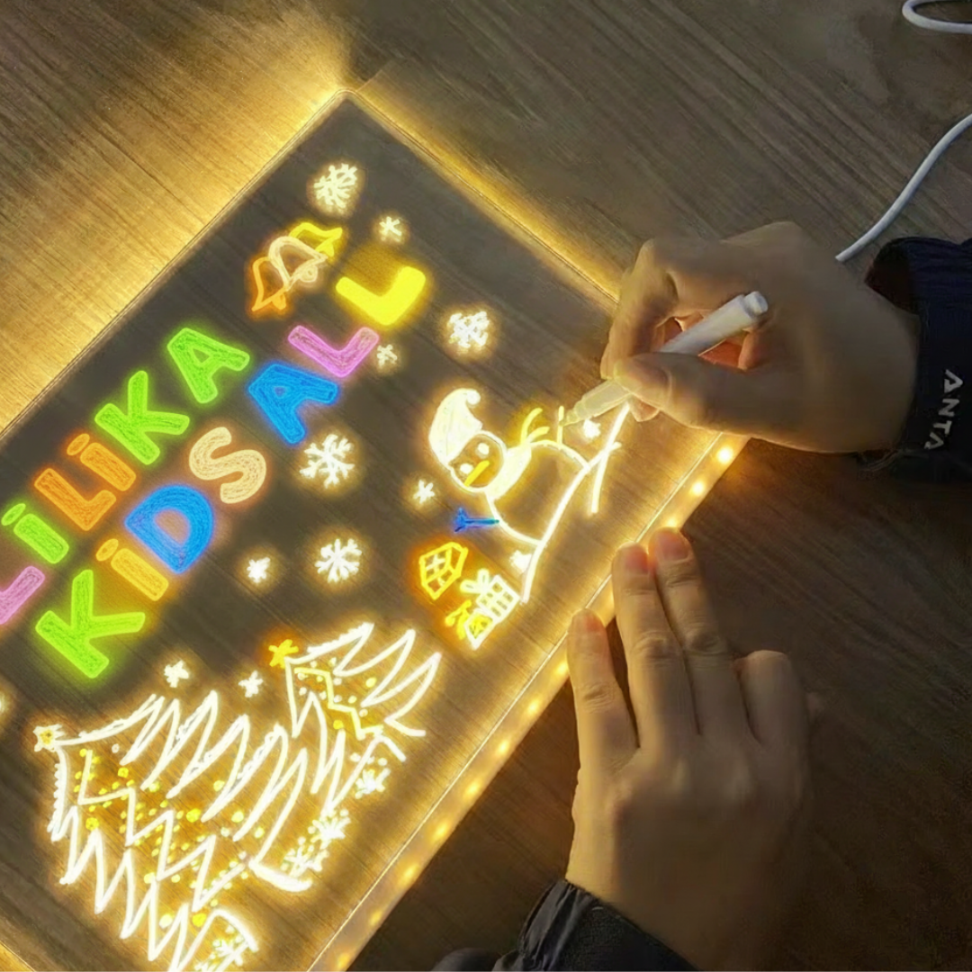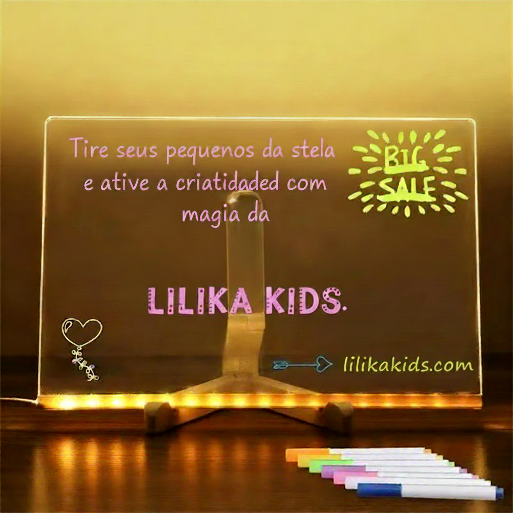 A Lousa Acrílica LED Interativa para Desenho Infantil foi desenvolvida para transformar o momento de brincar em uma experiência criativa, educativa e encantadora. Com um moderno sistema de iluminação em LED, os desenhos ganham um efeito luminoso incrível, despertando o interesse das crianças e incentivando a imaginação desde os primeiros traços.