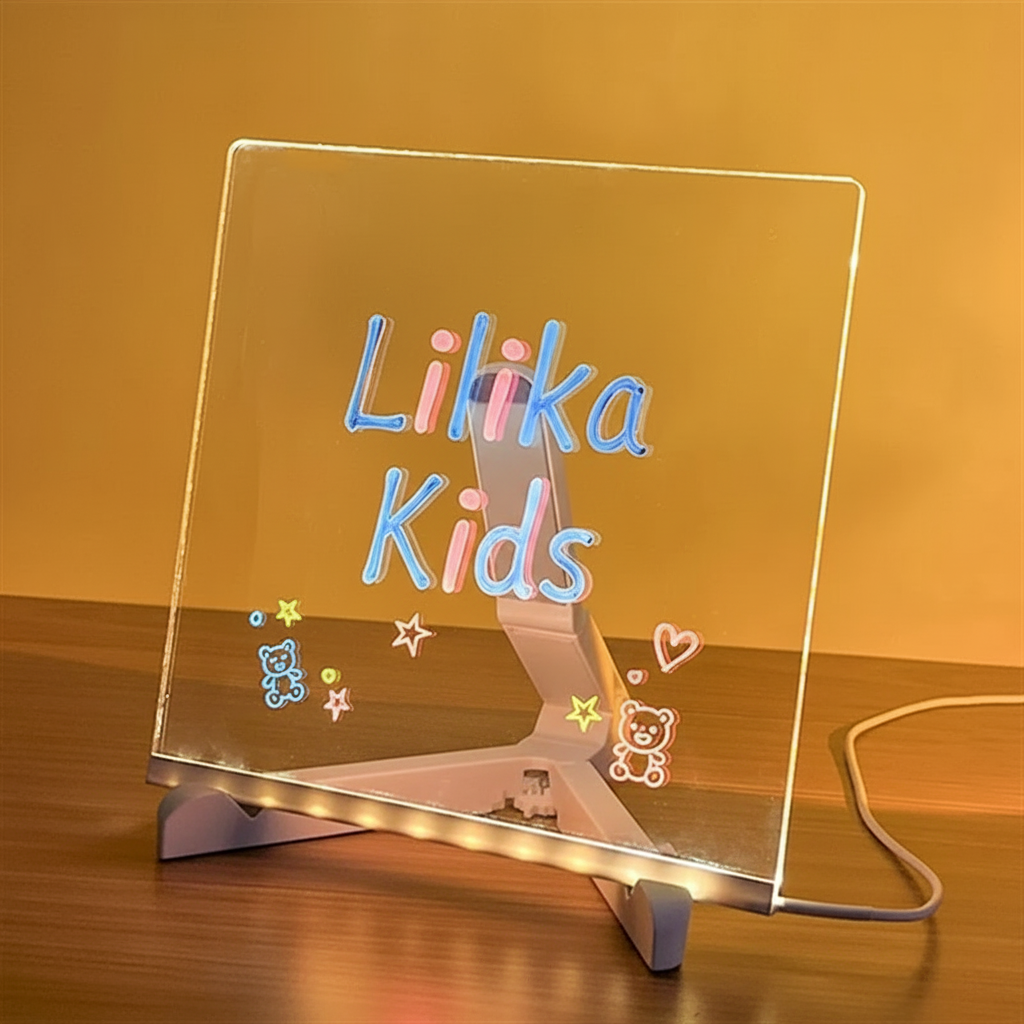 Ideal para uso individual ou em família, a Lousa Acrílica LED também pode ser utilizada como elemento decorativo no quarto infantil, criando um ambiente lúdico e acolhedor.